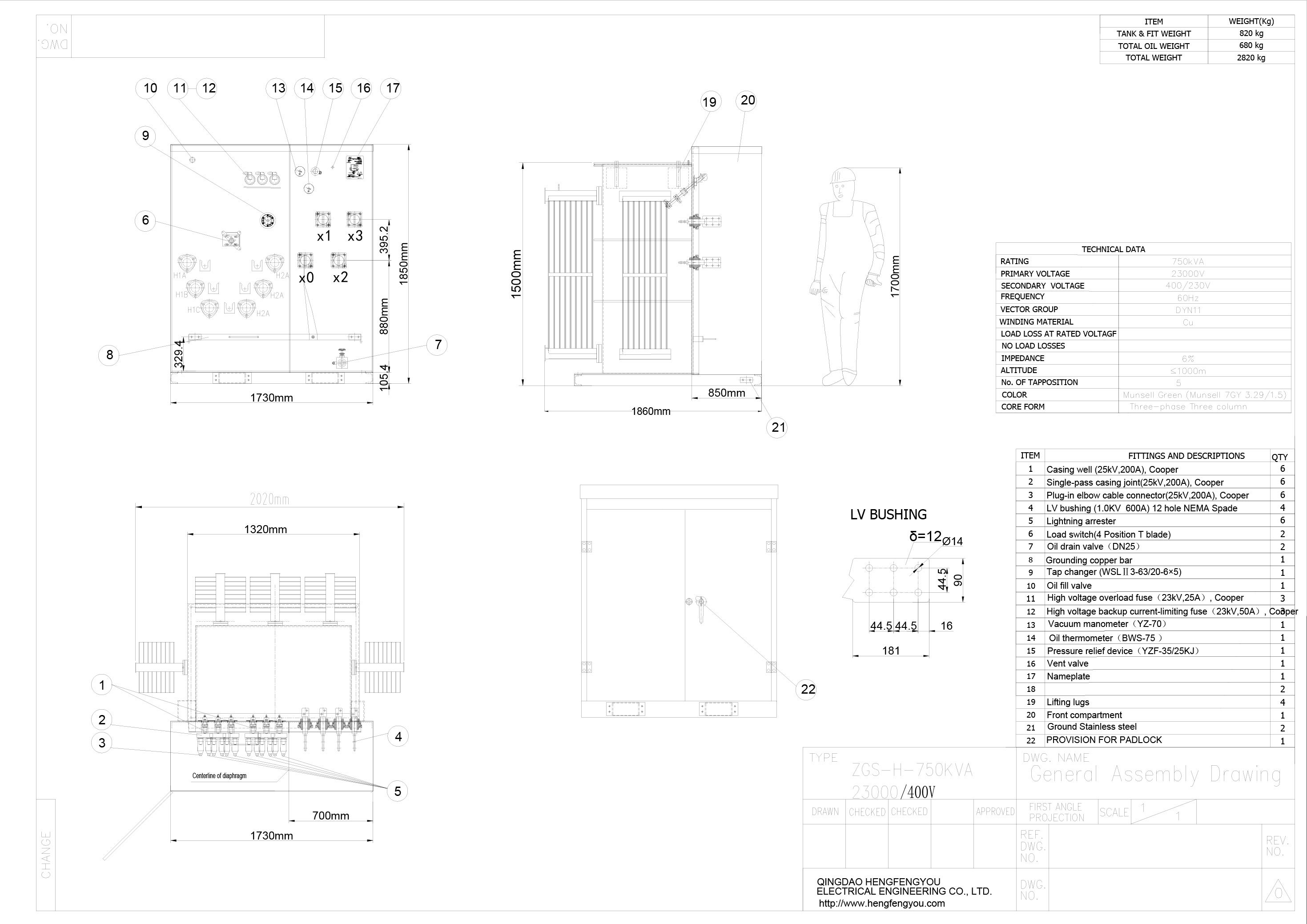 4. Technical sheet for 750kva three-phase pad-mounted transformer